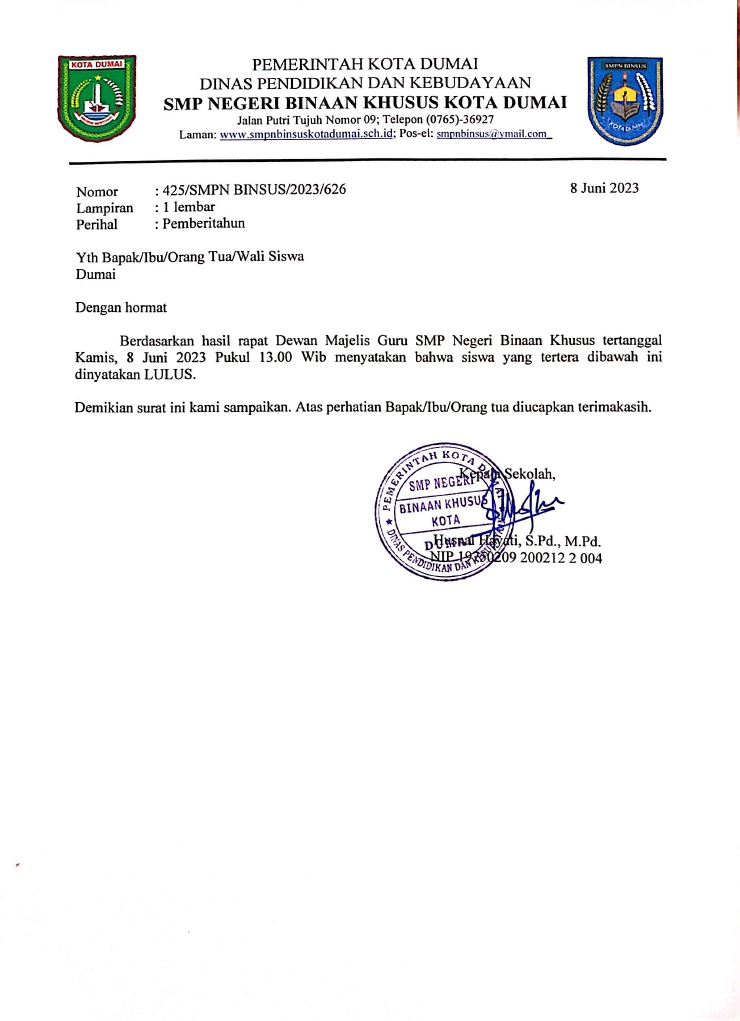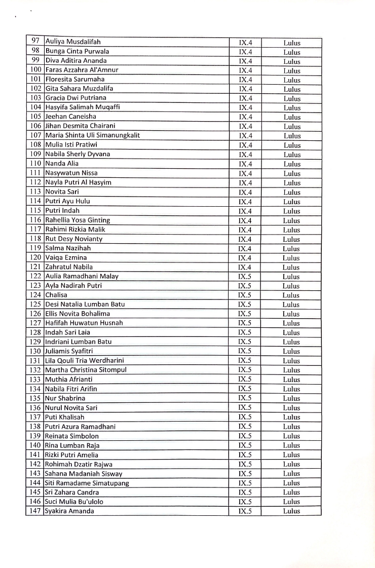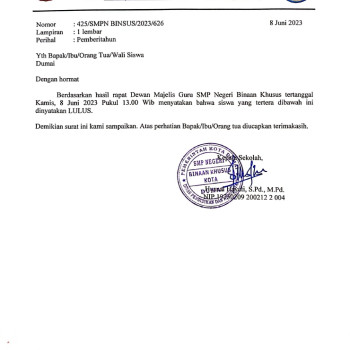 Pengumuman Kelulusan Peserta Didik Kelas Ix T P 20