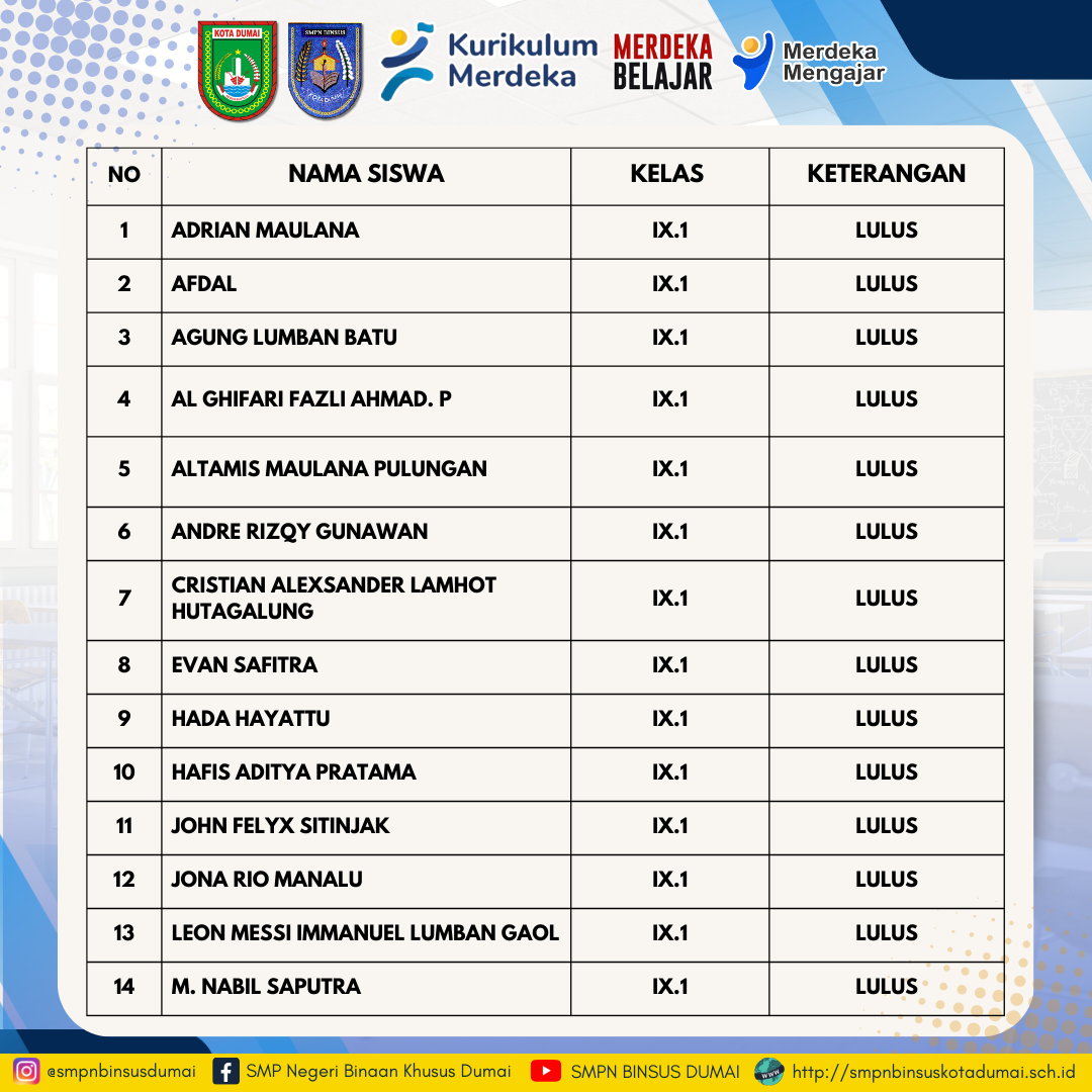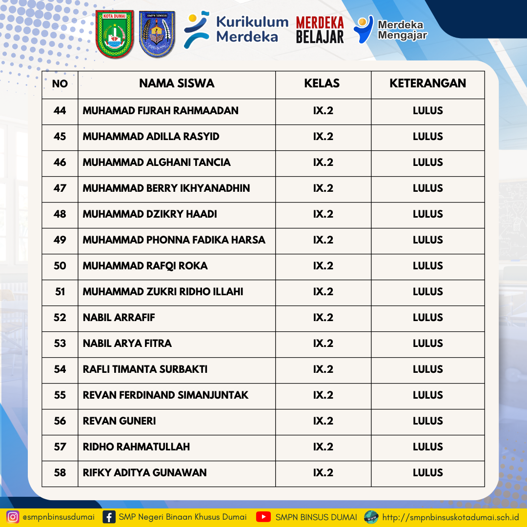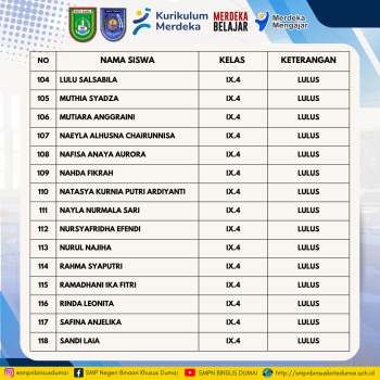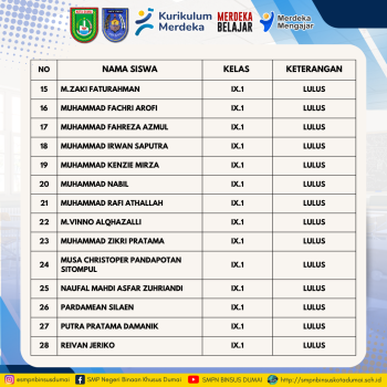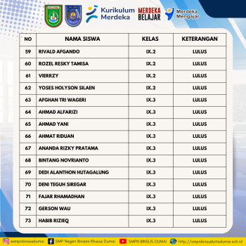 Pengumuman Kelulusan Peserta Didik Kelas Ix T P 20